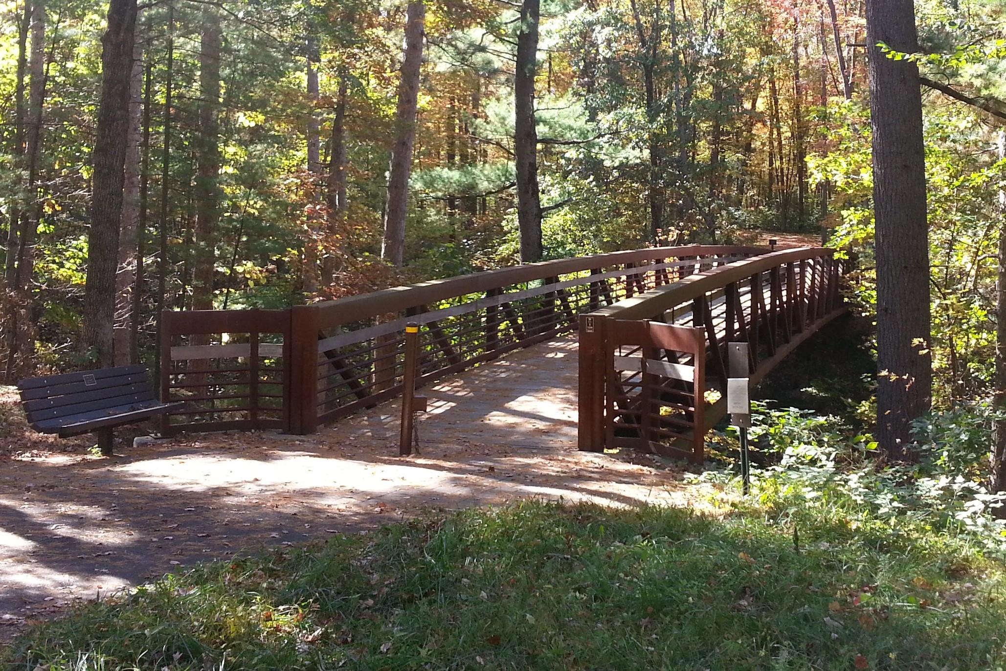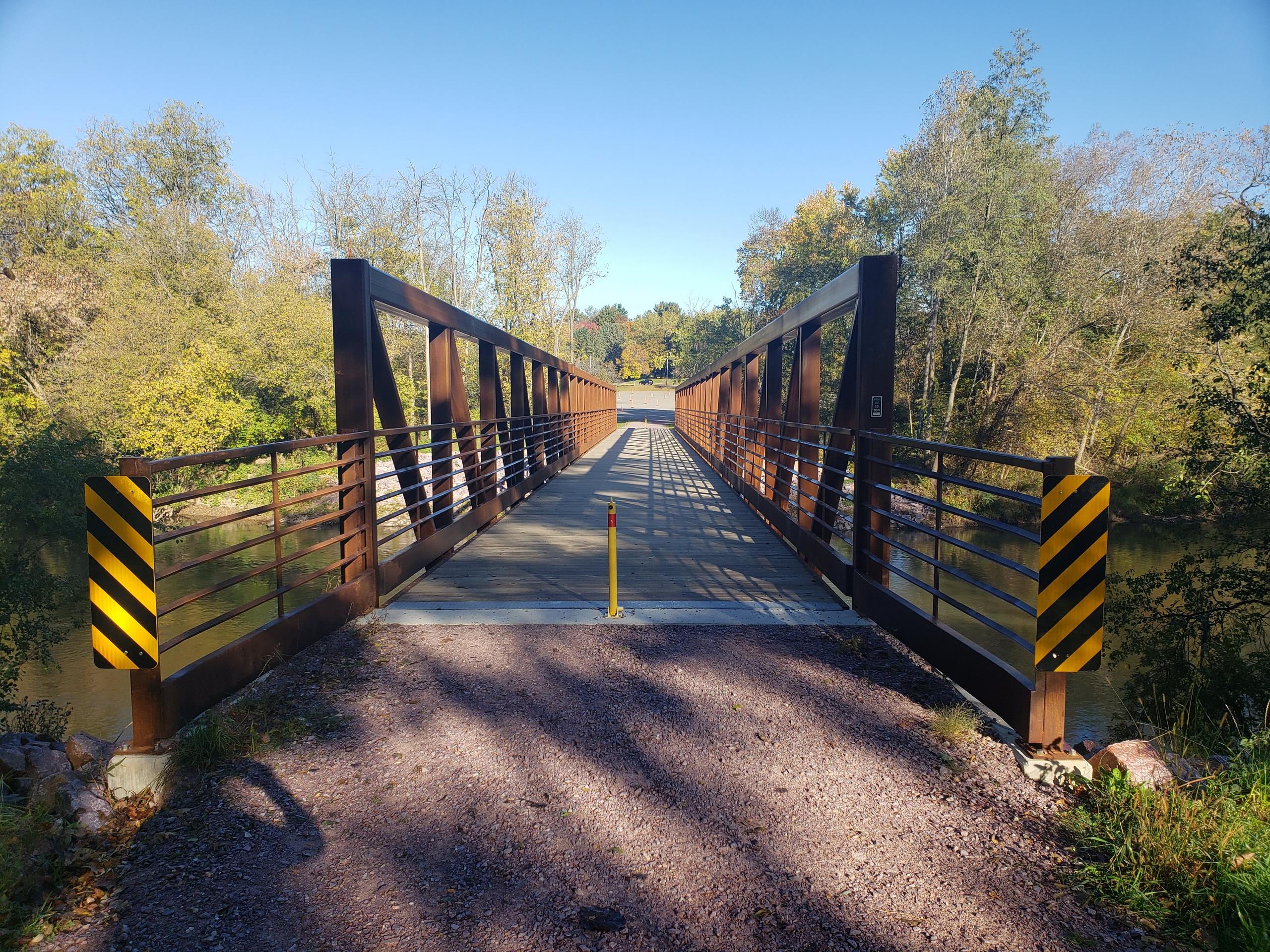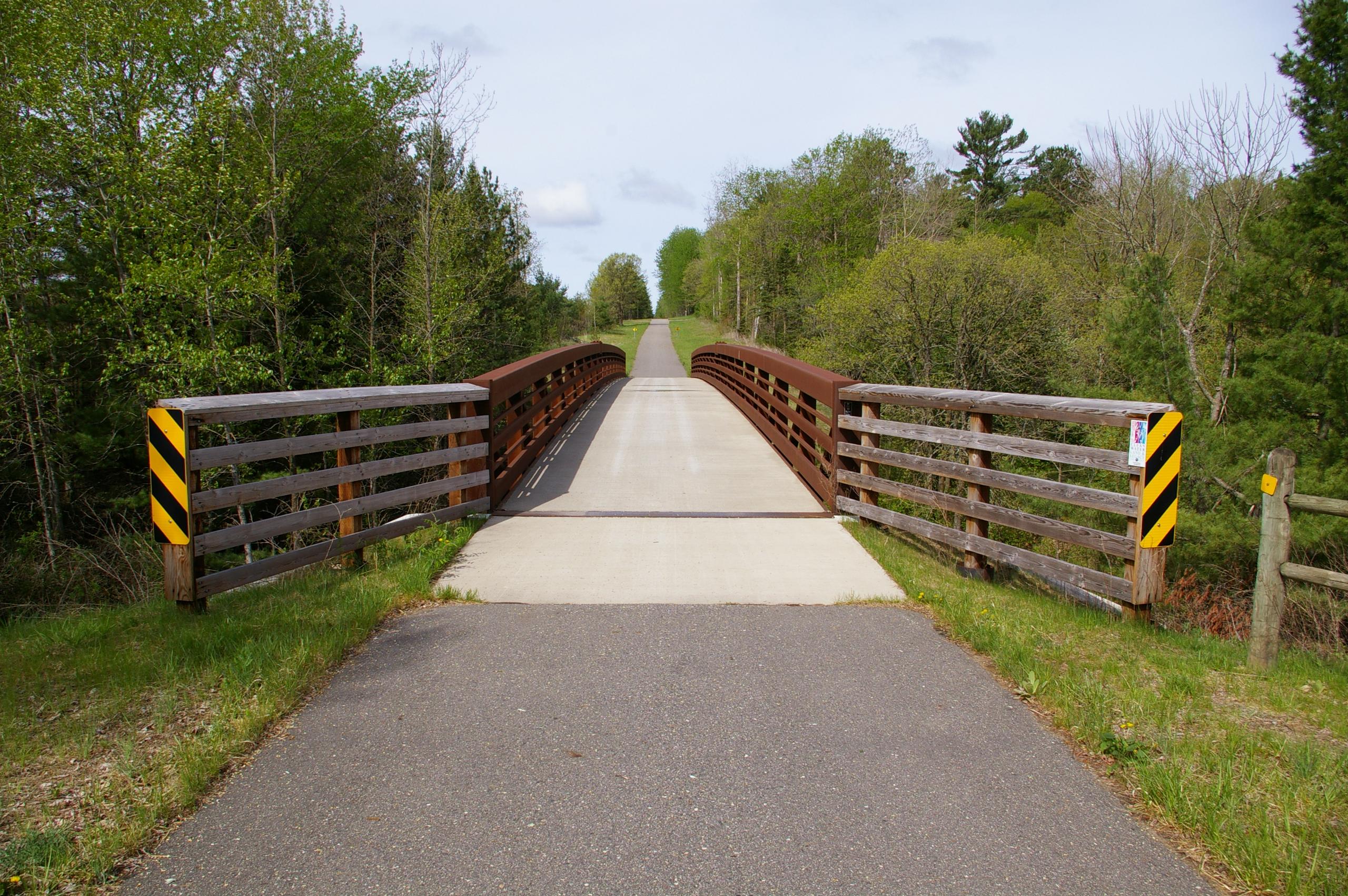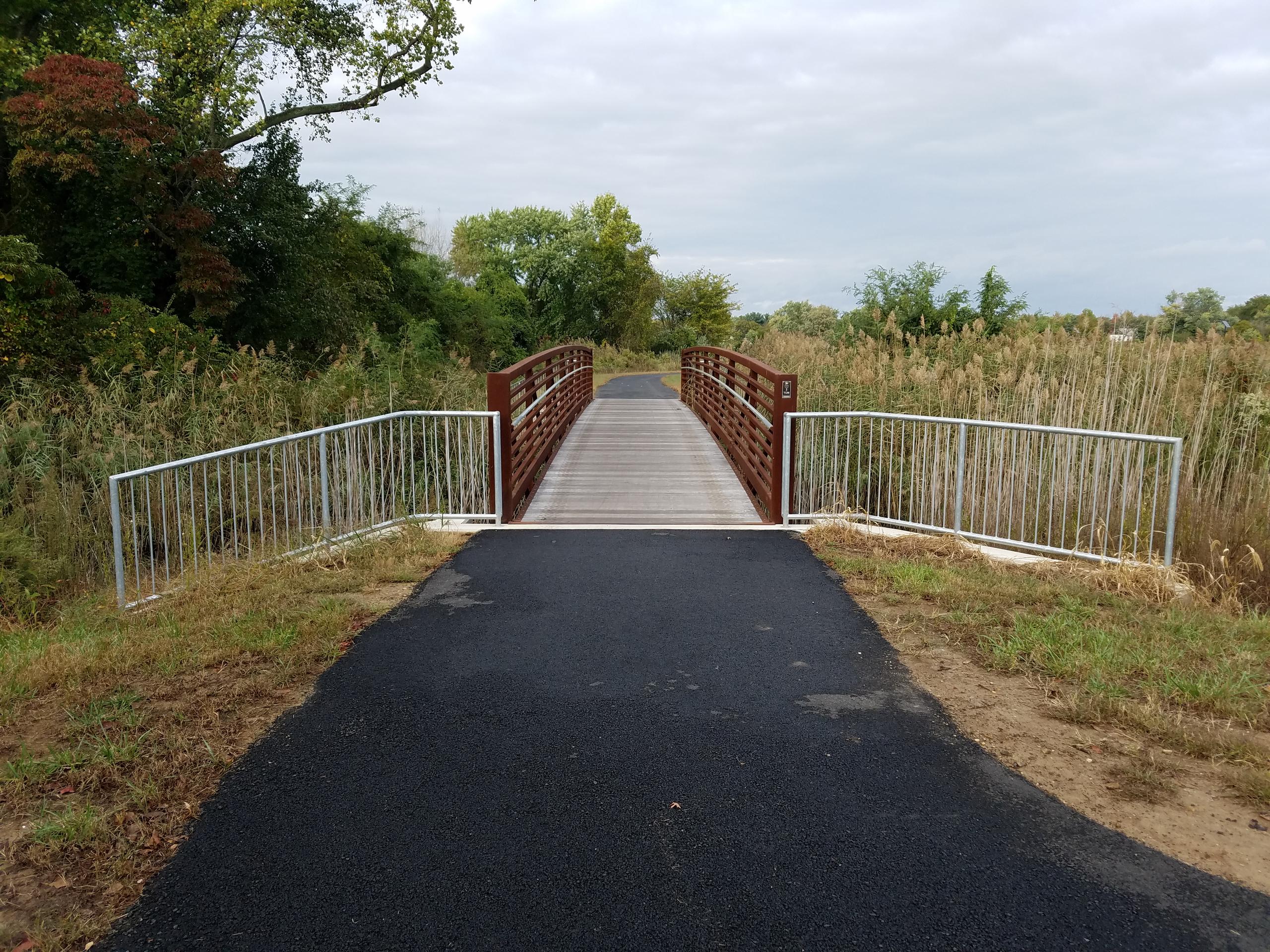 Approach railing guides users onto the bridge. Custom sections can be built to match or complement the bridge. Less expensive options utilize preserved wood. Regardless of style, approach railing is encouraged.