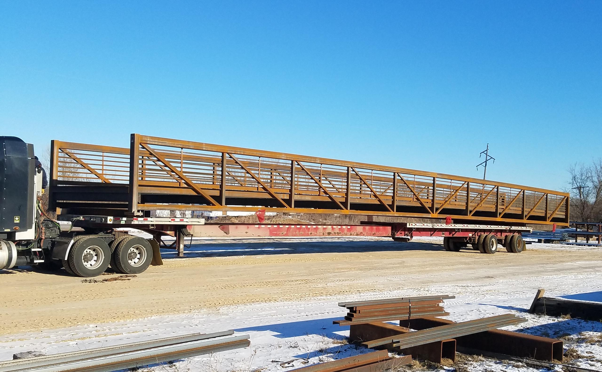 Bridges are shipped via an independent carrier. Delivery is made to a location nearest the site, which is easily accessible to normal over-the-road tractor/trailer equipment.