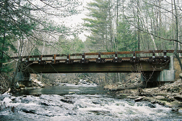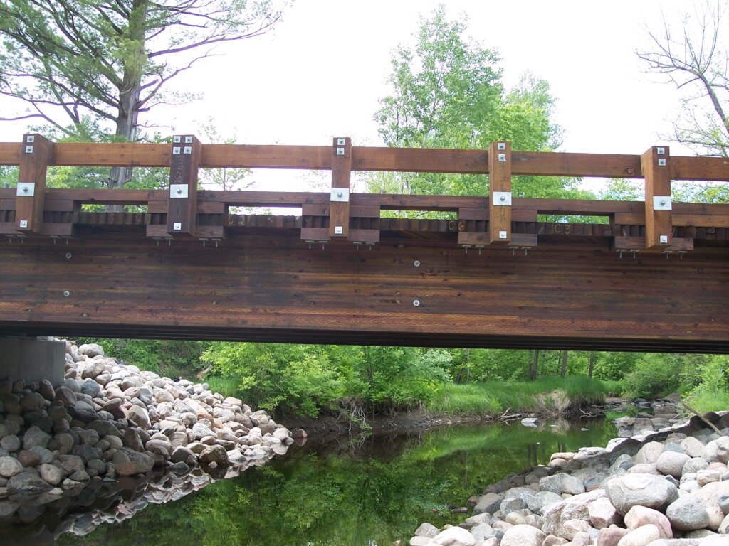 QNAP treated timber panels offer a durable and fast installing deck system. Compatible with TL-2 and TL-4 (NCHRP 350) crash-tested railing systems, they provide the complete bridge kit for accelerated bridge construction. Interconnected panel details effectively accommodate an asphalt wear surface. Timber wear surfaces are appropriate for remote locations or private applications where the wood aesthetic is preferred.
